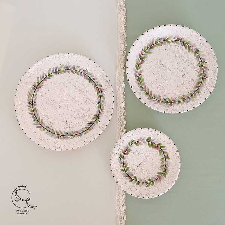ست بشقابهای سرامیکی با طراحی برگهای رنگی مناسب برای کسانی که دنبال سادگیِ خاص، کیفیت بالا و حس خوب زندگی هستن